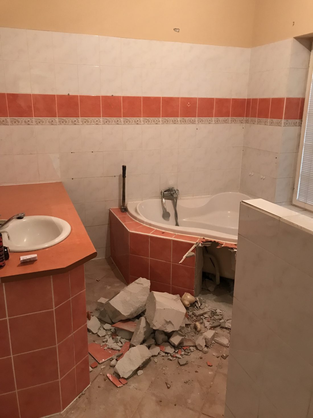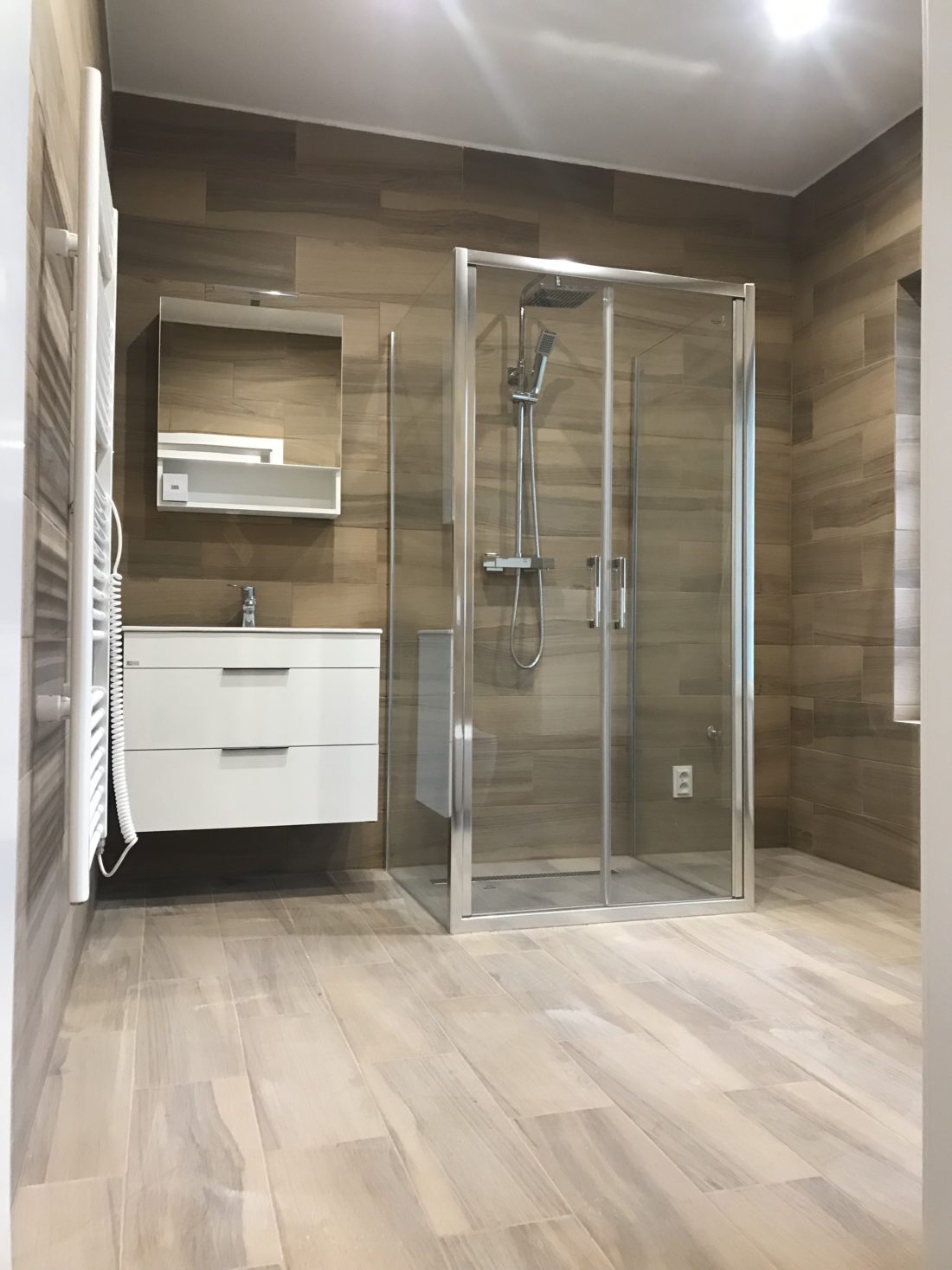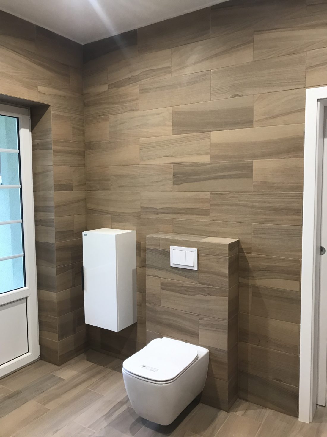 Kompletní rekonstrukce koupelny, SDK strop, obklady, Vodoinstalace, Odpady, Elektroinstalace, Nové plastové okno.